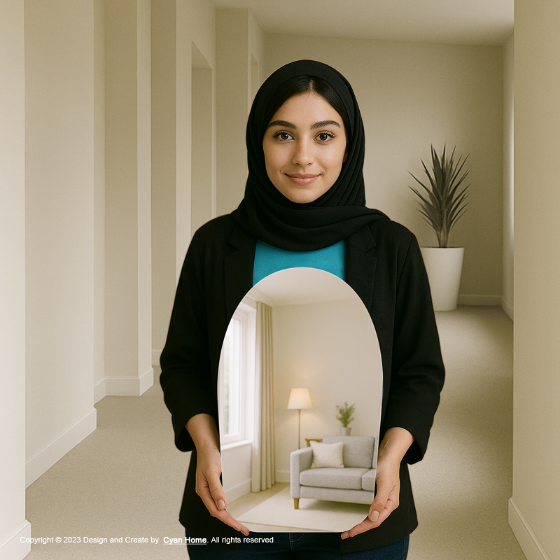- لبههای منحنی و ایمن: یکی از ویژگیهای برجسته طراحی این آینه، لبههای منحنی و صیقلی آن است. این انحناها نه تنها به آینه ظاهری نرم و دلنشین میبخشند، بلکه ایمنی آن را نیز افزایش میدهند. دیگر نگران لبههای تیز و برنده آینههای سنتی نخواهید بود، که این امر آن را به گزینهای عالی برای اتاق کودکان و نوجوانان نیز تبدیل میکند.